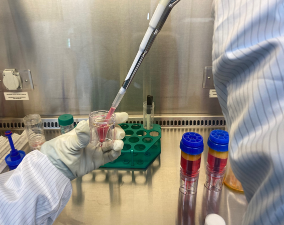 | ▲ 상층액을 따라내고 SVF를 분리하는 과정. [사진=연세사랑병원] |