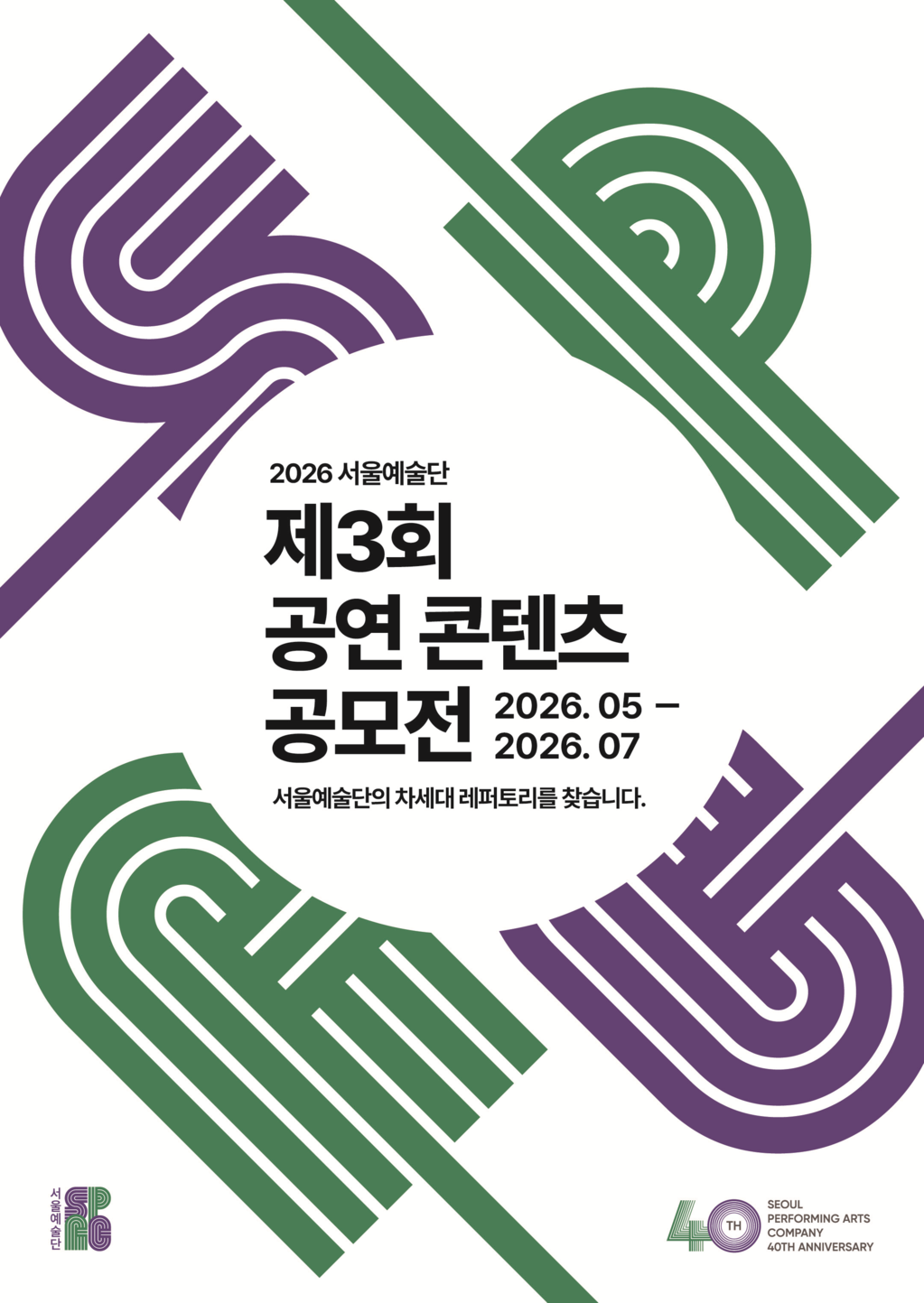 한편 ‘2026 서울예술단 제3회 공연 콘텐츠 공모전’의 공모 부문, 지원 자격, 접수 일정 및 방법, 제출 자료 등 세부 모집요강은 내달 초 서울예술단 공식 채널을 통해 별도 공지될 예정이다.