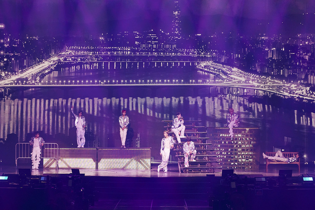 또한 이번 공연은 가로 60M, 세로 14M 규모의 초대형 LED 스크린과 트라이앵글 모양의 무대 디자인이 거대한 규모감을 자아냈으며, 다이아몬드 형태의 리프트 스테이지, 몽환적이고 환상적인 느낌을 선사하는 프로젝션 매핑과 샤막(반투명 스크린)을 활용한 발라드 섹션 연출, 곡의 몰입감을 더하는 다양한 VCR, 분위기에 따라 연출되는 레이저와 조명, 폭죽 등 화려하고 풍성한 볼거리도 시시각각 펼쳐져 눈길을 끌었다.